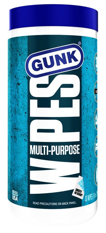 GUNK MPDW30 Multi-Purpose Wipes, 8 in L, 12 in W, Citrus