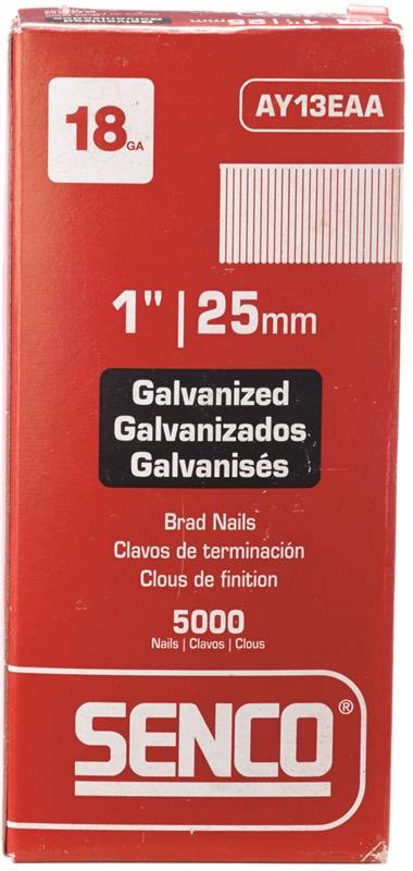 SENCO AY13EAA Nail, 1 in L, 18 Gauge, Steel, Electro-Galvanized, Brad, Slight Head, Smooth Shank