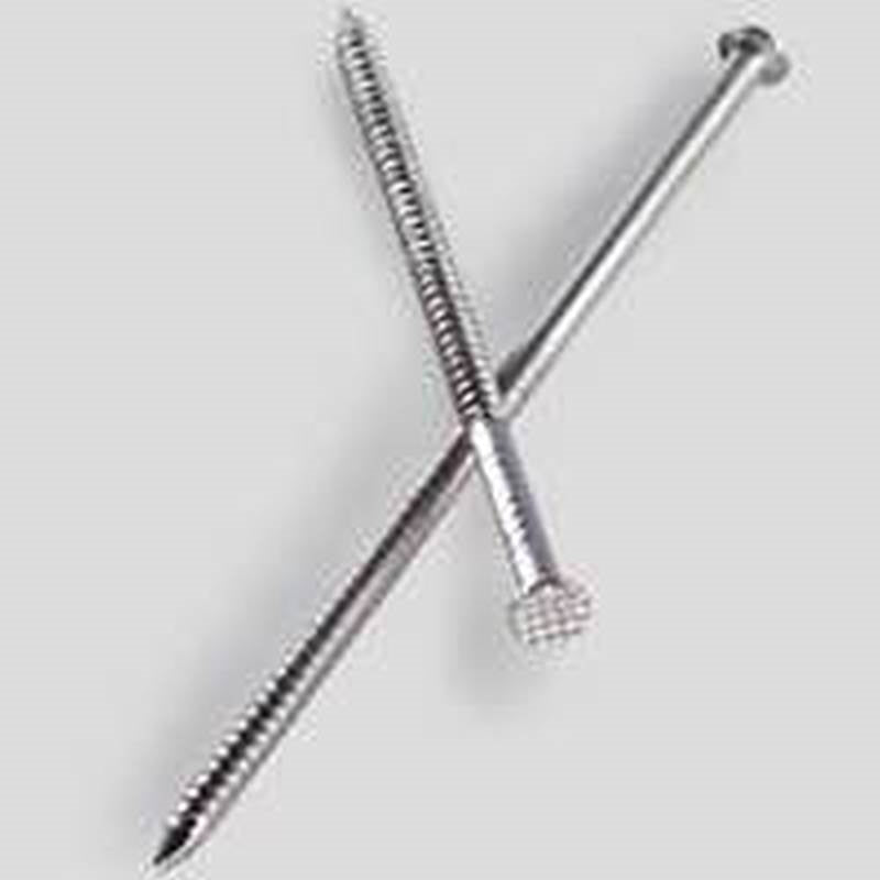Highest quality nails for cedar, redwood and cypress siding materials. High tensile nickel/chromium stainless steel will last the life of wood siding without degradation ever. Slender gauge and blunt diamond point minimize splitting. Generous under-head fillet allows nails to be driven flush or countersunk without crushing surrounding wood. Checker pattern head blends with wood texture and serves to diffract sunlight. Annular ring threads preclude cupping of siding boards and nail-head popping. Use 316 Stainless steel for seaside applications and excellent corrosion resistance.