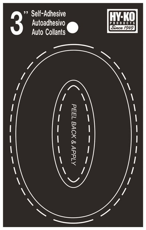 HY-KO 30400 Series 30410 Die-Cut Number, Character: 0, 3 in H Character, Black Character, Vinyl