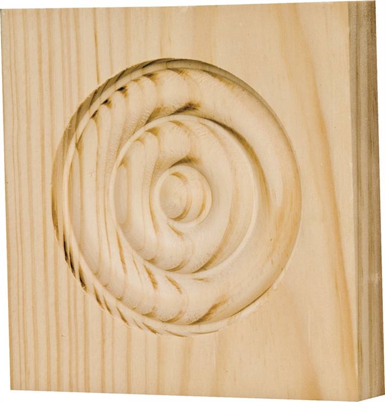 Waddell RTB35M Trim Block, 3-3/4 in H, 3-3/4 in W, Rosette Pattern, Pine Wood